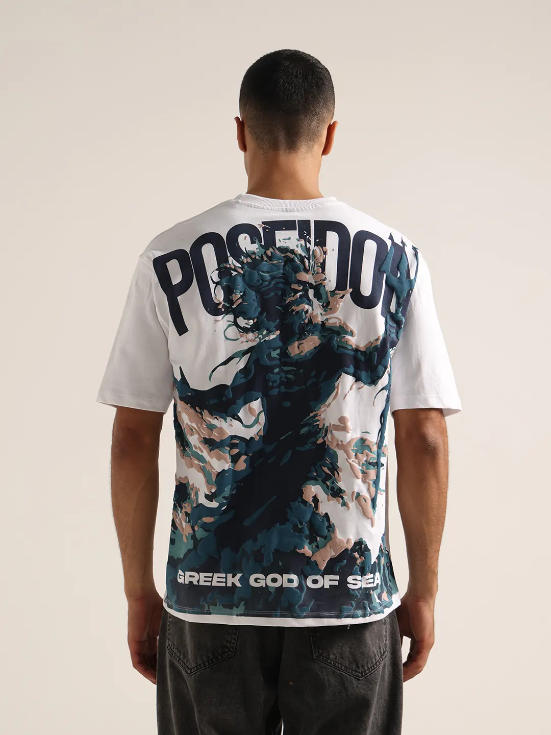 Inspired by Greek mythology, this tee is a tribute to the ruler of the seas, capturing Poseidon's fury in a bold, screen-printed design with the heavy puff print for sharp details The different shades of blue reflects the vast ocean he rules and also he is considered as the most powerful god in the world .
